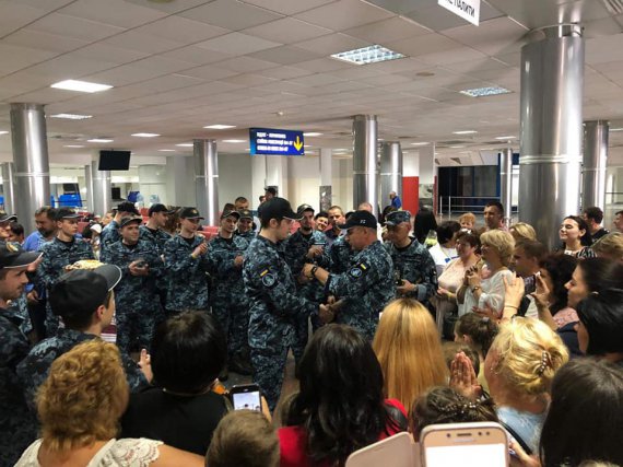 Командувач Військово-Морських сил ЗС України привітав в аеропорту "Бориспіль" українських військових моряків із поверненням.