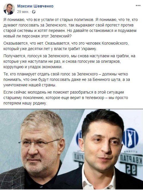 Ми маємо зупинити цей маразм і пояснити тим, хто не розуміє, що голосуючи за Зеленського, люди голосують за прихід до влади Коломойського і фактичну смерть України!