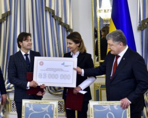 Президент із дружиною вручили міністру культури Євгену Нищуку чек на 3 млн грн. Глава держави висловив сподівання, що інші благодійники також робитимуть внески у цей проект.