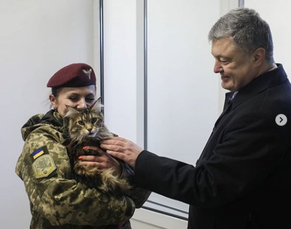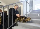 Під час робочої поїздки на Житомирщину президент Петро Порошенко встиг побавитися з котом.