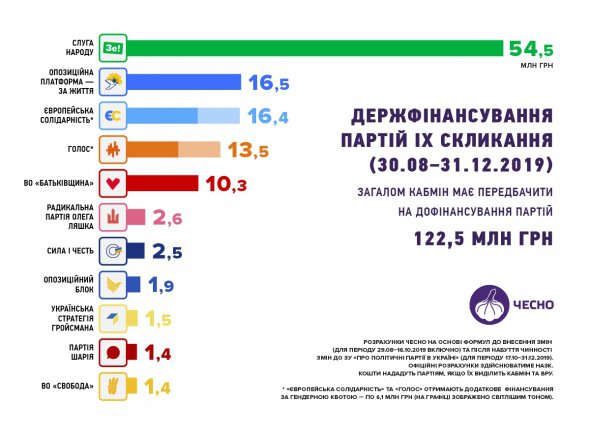 Загалом за період від 30 серпня до 31 грудня 2019 року НАЗК мало розподілити між партіями парламенту нового скликання та позапарламентськими партіями 122,5 млн грн.