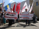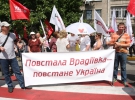 - Зека геть! - скандують. Тримають у руках прапори УДАРу та "Батьківщини". Попереду себе несуть великий червоний транспорант із написом "Врадіївська хода".