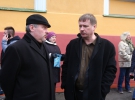 Із чорного позашляховика виходить співак Святослав Вакарчук. Говорити відмовляється. Одразу йде до церкви. Повз нього, спираючись на палицю, проходить журналістка Наталка Чангулі.