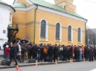 До церкви час од часу приходять кияни з квітами. Кладуть їх біля труни. Моляться. За годину збирається до сотні людей. Новоприбулі чекають біля входу.