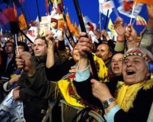 Під ногами валяються пошматовані плакати, газети, а також взуття. В руках прихильники опозиції тримають окрім прапорів "Свободи", "Народного руху", "Нашої України" та БЮТ плакати з фотографією прем"єр-міністра Володимира Путіна, яка перекреслена навхрест червоними рисками.