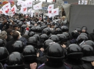 Близько 200 працівників міліції стояли по обидва боки від дороги біля Апеляційного суду. Не пускали на дорогу мітингувальників.