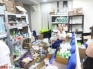 У штабі, закладеному до стелі коробками з ліками, за столом троє жінок відповідають на телефонні дзвінки.