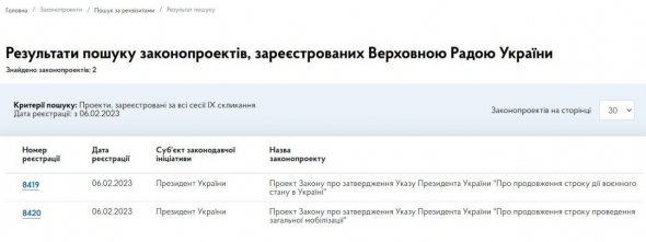 У понеділок, 6 лютого, президент Володимир Зеленський подав до Верховної Ради законопроєкти 8419 та 8420 про продовження воєнного стану та мобілізації