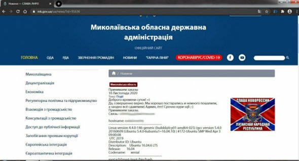 Прокремлівські хакери зламали сайт Миколаївської обласної держадміністрації.