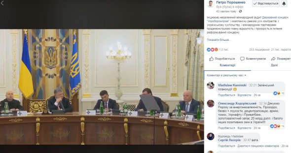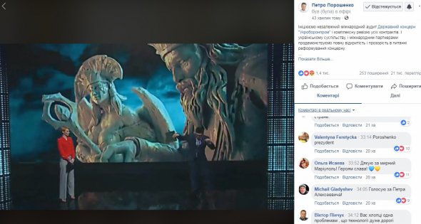 На 34 хвилині, коли президент говорив про ревізію і аудит в Укрооборонпромі, офіційна трансляція перервалася початком ток-шоу.