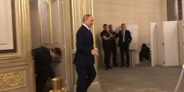 Президента РФ Володимира Путіна під час відвідання ним вбиральні в перерві між переговорами нормандської четвірки в Парижі супроводжували шість чоловік.