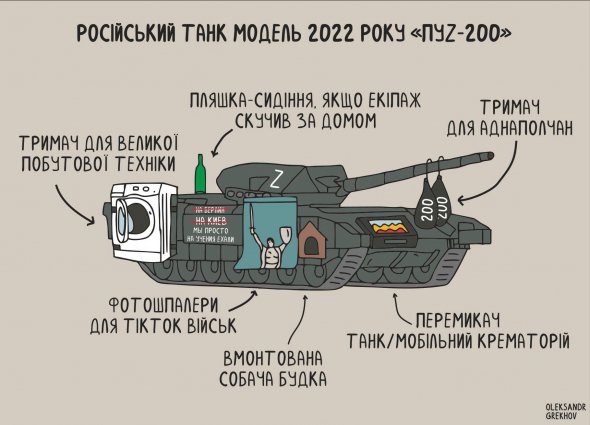 "На параді у москві презентували нову модель танка!" - пише художник Олександр Грехов.
