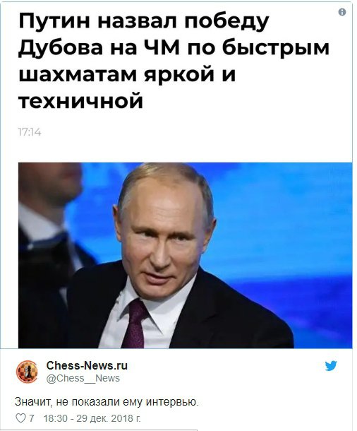 Володимир Путін привітав чемпіона світу зі швидких шахів Данила Дубова з перемогою. Гросмейстер категорично виступає проти анексії Росією Кримського півострова.