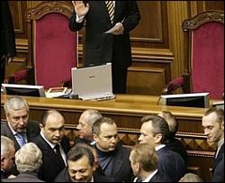 Фракція Партії регіонів заблокувала трибуну і президію парламенту, вимагаючи, щоб перед депутатами виступили президент, прем"єр-міністр, глава Національного банку з аналізом ситуації в країні.