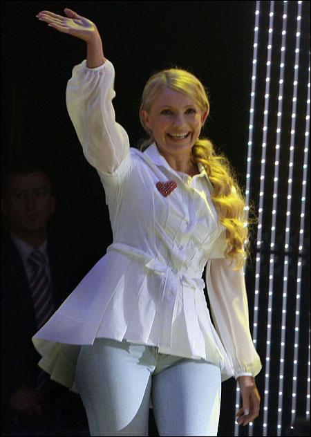 Тимошенко на своє шоу вийшла у супер-демократичному образі: блакитні облягаючі джинси та розплетена коса.