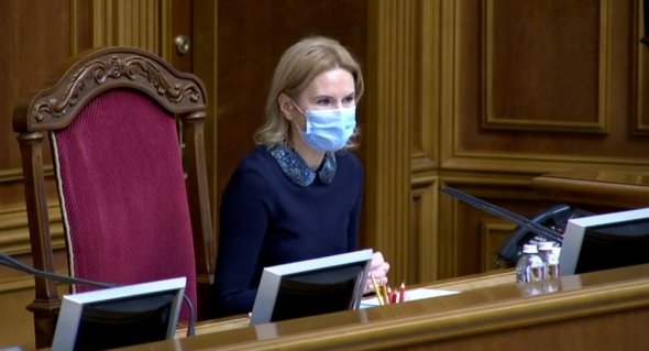 Олена Кондратюк веде засідання через те, що спікер Дмитро Разумков та його перший заступник Руслан Стефанчук отримали позитивні результати тесту на коронавірус.