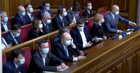 Сьогодні в парламенті про запровадження карантину вихідного дня, обмежувальні заходи та використання бюджетних коштів доповідає прем'єр-міністр Денис Шмигаль. Також у залі присутні члени уряду.