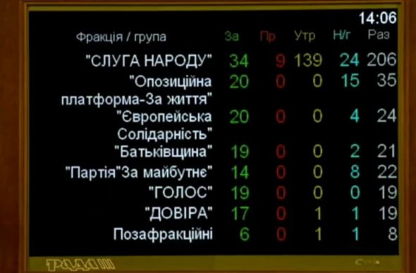 Верховна Рада провалила рекомендацію Кабміну скасувати карантин вихідного дня. Постанову підтримали лише 149 нардепів при 226 необхідних.