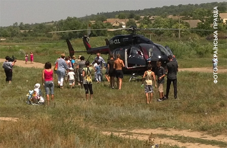 Вертоліт приземлився просто на полі, піднявши багато пилу, він привернув увагу місцевих жителів.