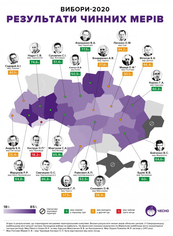 Кожен 2-й мер обласного центру переміг у 1-му турі виборів, повідомляє рух "Чесно".