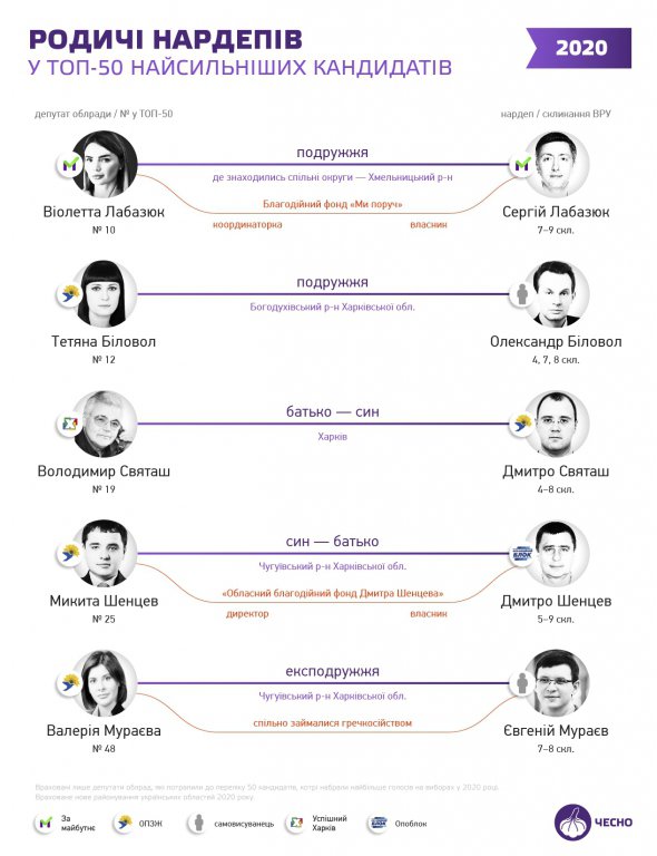 Мажоритарні округи родичів-нардепів збігалися з територією округів, де 2020 року балотувались в обласну раду кандидати. Отож упізнаване в окрузі прізвище стало головною причиною рекордних результатів кандидатів.