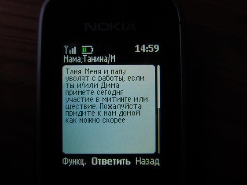 Після того, як власті отримали повідомлення про підготовлювану акцію, на деяких її учасників тут же стали чинити тиск правоохоронці. Pвонілі їм додому, погрожували, залякували навіть батьків. Ось таку СМС отримала від батьків одна з учасниць мітингу, пише в livejournal користувач frankensstein.