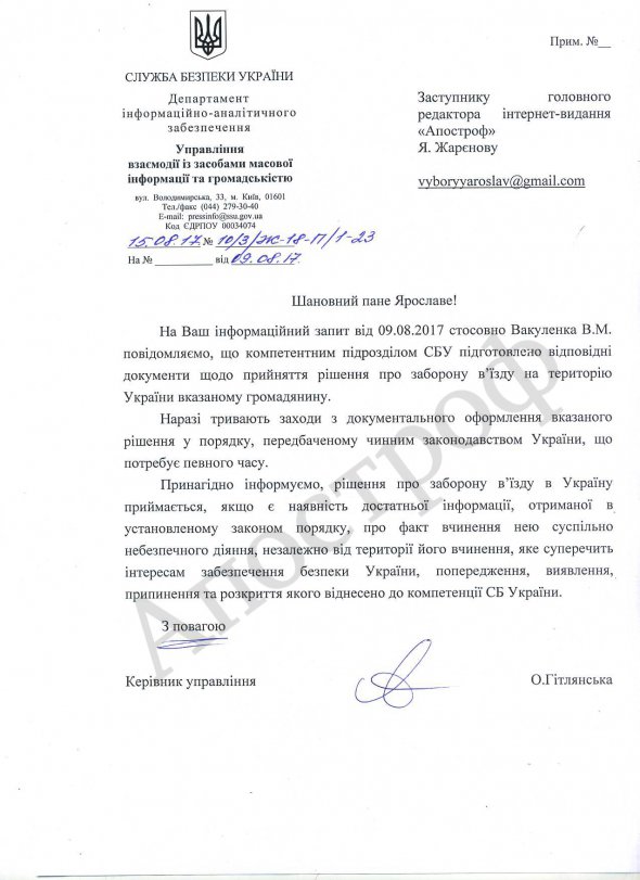 Раніше СБУ заборонила відвідувати Україну російському рокеру Найку Борзову. Крім того, протягом двох тижнів липня семи російським виконавцям відмовили у в'їзді в Україну.