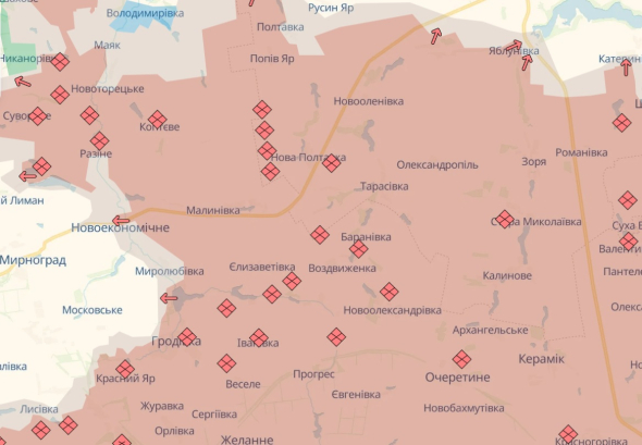 "Ворог просунувся у Березовому (Дніпропетровська область), Новоекономічному (Донецька область), біля Новоіванівки (Запорізька область) та Романівки (Донеччина)", - сказано в повідомленні.
