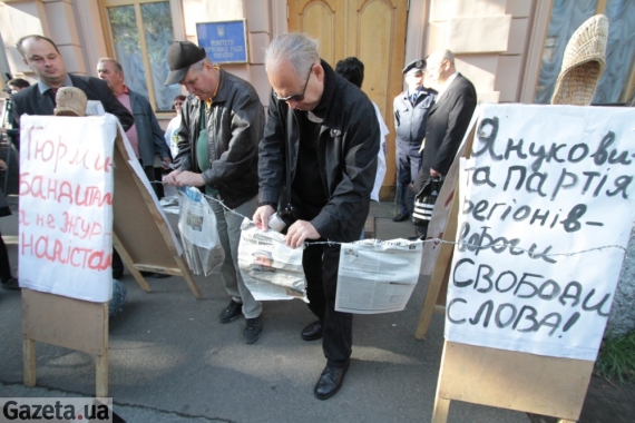 Сьогодні під комітетами Верховної Ради відбувся журналістський протест проти ухвалення у другому читанні проекту закону про "наклеп", який передбачає кримінальну відповідальність для журналістів за образу честі, гідності та ділової репутації.