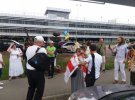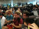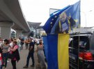 Зустрічати лідера "Руху нових сил" зібралися соратники та представники ЗМІ. Люди до аеропорту приїхали з короваєм і плакатами. Заспівали гімн, потім увімкнули музику.