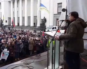 "Україна потребує нової влади, створення нового уряду. Я готовий разом з вами очолити цей процес та уряд", - говорить колишній президент Грузії й ексголова Одеської облдержадміністрації Міхеіл Саакашвілі зі сцени на площі Конституції під Верховною Радою 19 листопада 2017 року.