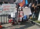 Серед них волинські шахтарі. Вони вимагають виплати зарплати за останні 3 місяці. Б'ють касками по огорожі і по плитці. Тримають плакат з надписом "Вимагаємо фінансування єдиної новобудови в Україні, шахти №10 "Нововолинська" на 2017 рік".