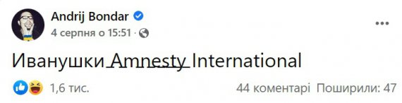 Також у мережі висміюють організацію Amnesty International, яка цього тижня зробила заяву в стилі роспропаганди, що українські військові нібито "наражають на небезпеку цивільне населення".