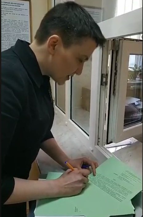 Народний депутат Надія Савченко принесла до військової прокуратури заяви, які надрукувала на зеленому папері. Документи прийняли.