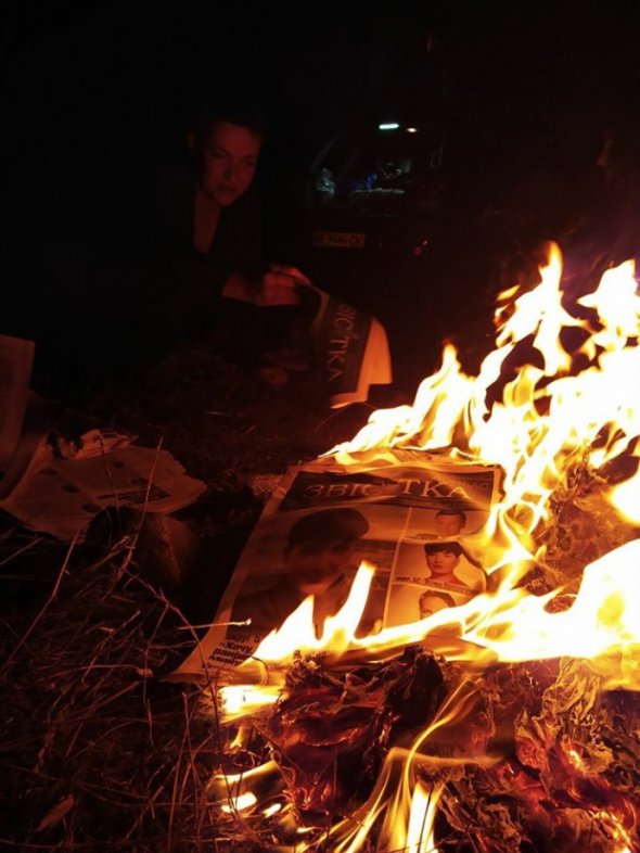 У Facebook Савченко опублікувала фото, на якому палить у багатті агітаційну газету зі своїм зображенням.