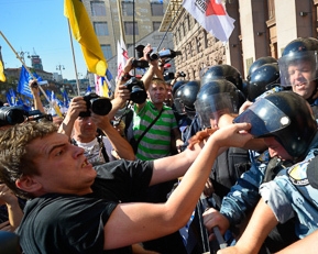 Намагання прорватися до будівлі Київради народного депутата від "Батьківщини" Арсенія Яценюка викликав сміх в рядах "Беркуту".