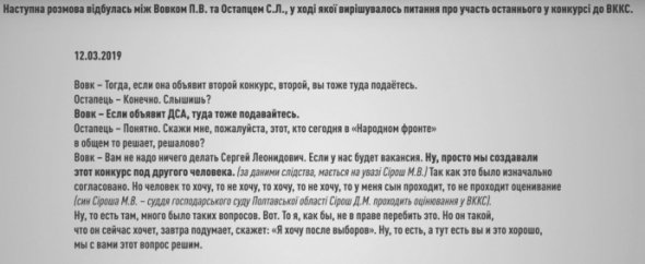 На записах фігурують, зокрема, глава суду Павло Вовк, судді Євген Аблов, Богдан Санін, Ігор Погрібніченко, Олексій Огурцов, члени Вищої кваліфікаційної комісії суддів Сергій Остапець і Микола Сірош, адвокат Олександр Кротюк, помічниця нардепа Сергія Ківалова Антоніна Славіцка, пише УП.