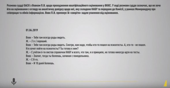 Розмови також щодо кваліфікаційного оцінювання, на яких кілька разів не були судді ОАСК, і можливість уникнути оцінювання нібито через хворобу.