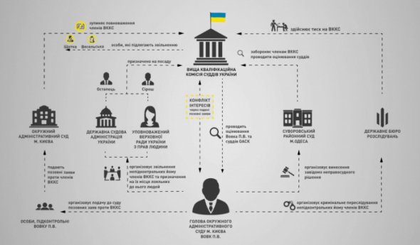 ГПУ зафіксувала протиправний вплив Окружного адміністративного суду Києва на прийняття рішень Конституційним судом, Вищою кваліфікаційною комісією суддів, Вищою радою правосуддя, а також вплив на діяльність міністерств, відомств і роботу Державного бюро розслідувань.