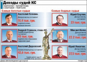 Доходи нинішніх суддів КС цього року істотно скоротяться. Рада і Кабмін своїми рішеннями вдвічі урізали зарплату вищим чиновникам, серед яких і судді КС.