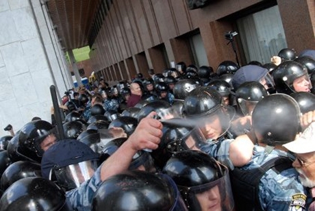 Сльозогінний газ під час акції протесту проти прийняття "мовного" закону пирскали і представники спецпідрозділу "Беркут" і мітингувальники.