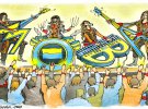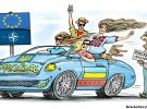 Народних депутатів від партії "Слуга народу" Микиту Потураєва, Євгенію Кравчук і Максима Бужанського намалювали в карикатурі. Малюнок художника Олексія Кустовського опублікувало "Радіо Свобода".