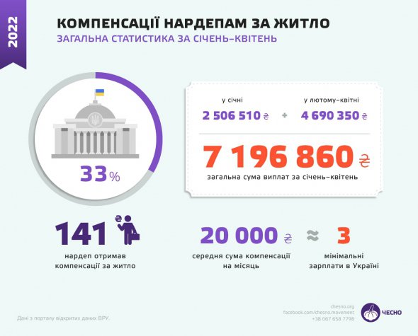 Від початку 2022-го 97 мажоритарників отримали компенсацію за житло, зі списочників кошти отримали лише 44 обранці.