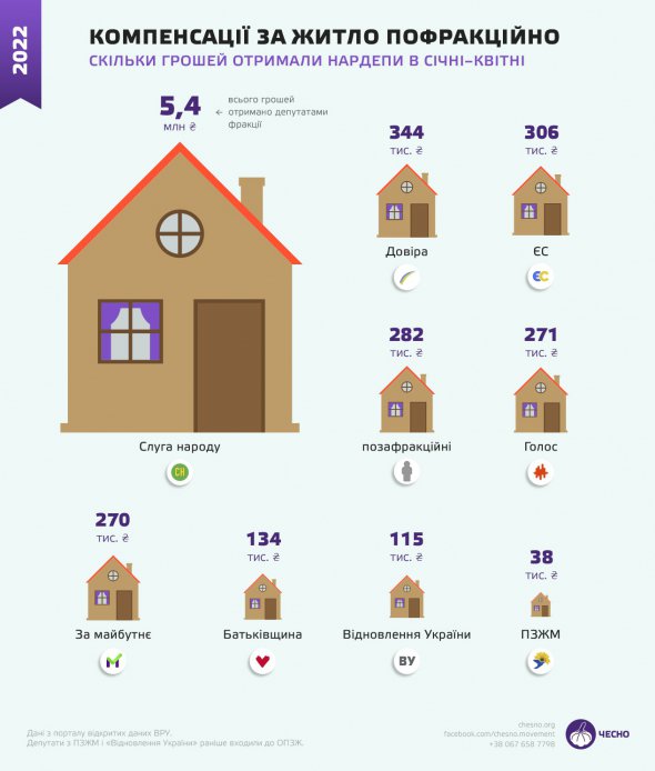 Це можна пояснити найбільшою кількістю депутатів у фракції і найбільшим відсотком у ній мажоритарників, які потенційно не мають житла у столиці. Але водночас відсоток депутатів з інших фракцій та груп, які отримали компенсацію, значно менший, як і загальні суми коштів компенсації.