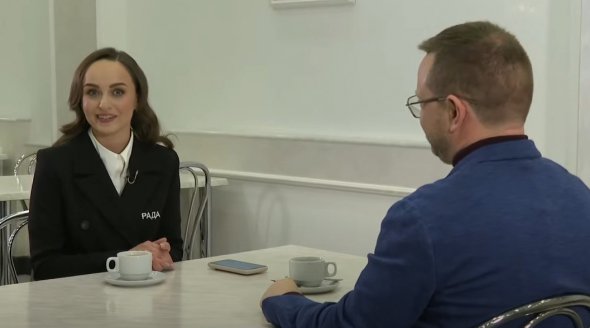 Ведуча каналу сиділа із депутатом за столом.