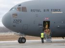 Британські військові розвантажили озброєння з літака Королівських Військово-повітряних сил.