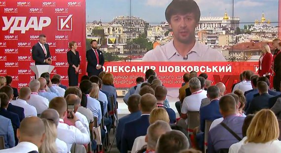 "Із нових облич партії він, на жаль, не зміг бути присутнім. Він присутній тут, але віртуально", - сказав Кличко.