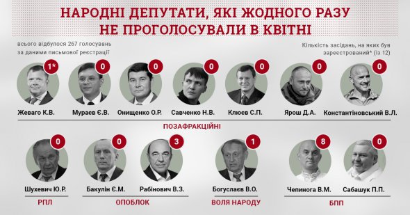 У квітні 13 народних депутатів жодного разу не проголосували в сесійній залі.