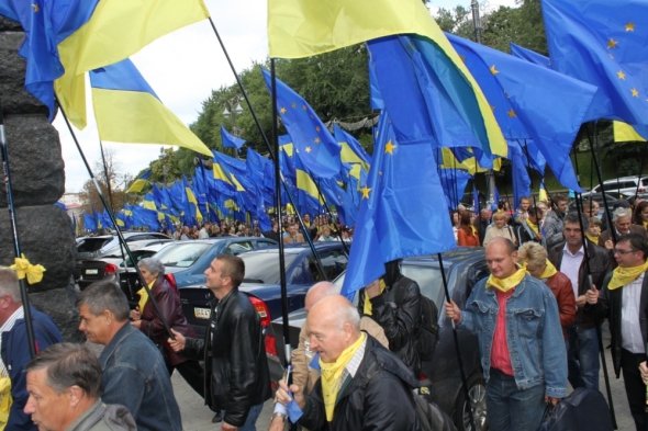 Близько тисячі людей прийшли під Верховну Раду, аби підтримати євроінтеграційний курс України. Учасники акції всеукраїнської кампанії "Євронаступ" пройшли ходою центром міста і провели мітинги під Погоджувальною радою, Кабміном та Адміністрацією президента.