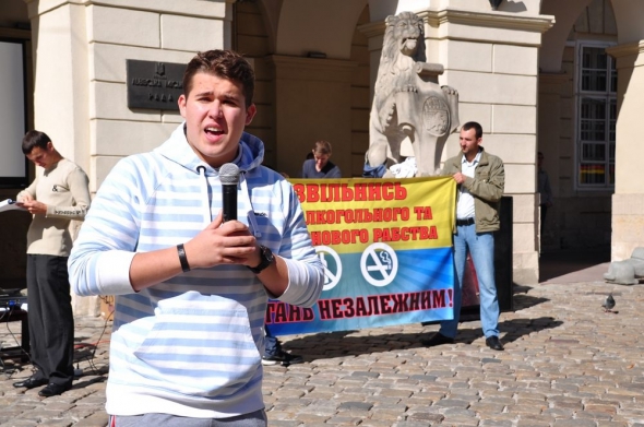 Активісти розтягнули два банери із закликами "Тверезі батьки – здорові діти", "Звільнись від алкогольного та тютюнового рабства. Стань незалежним". Активісти на площі Ринок закликами підтримати законопроект № 2062, який "має суттєво зменшити алкоголізацію країни" та роздавали людям листівки із роз'ясненнями про шкоду, яку завдає алкоголь організму.